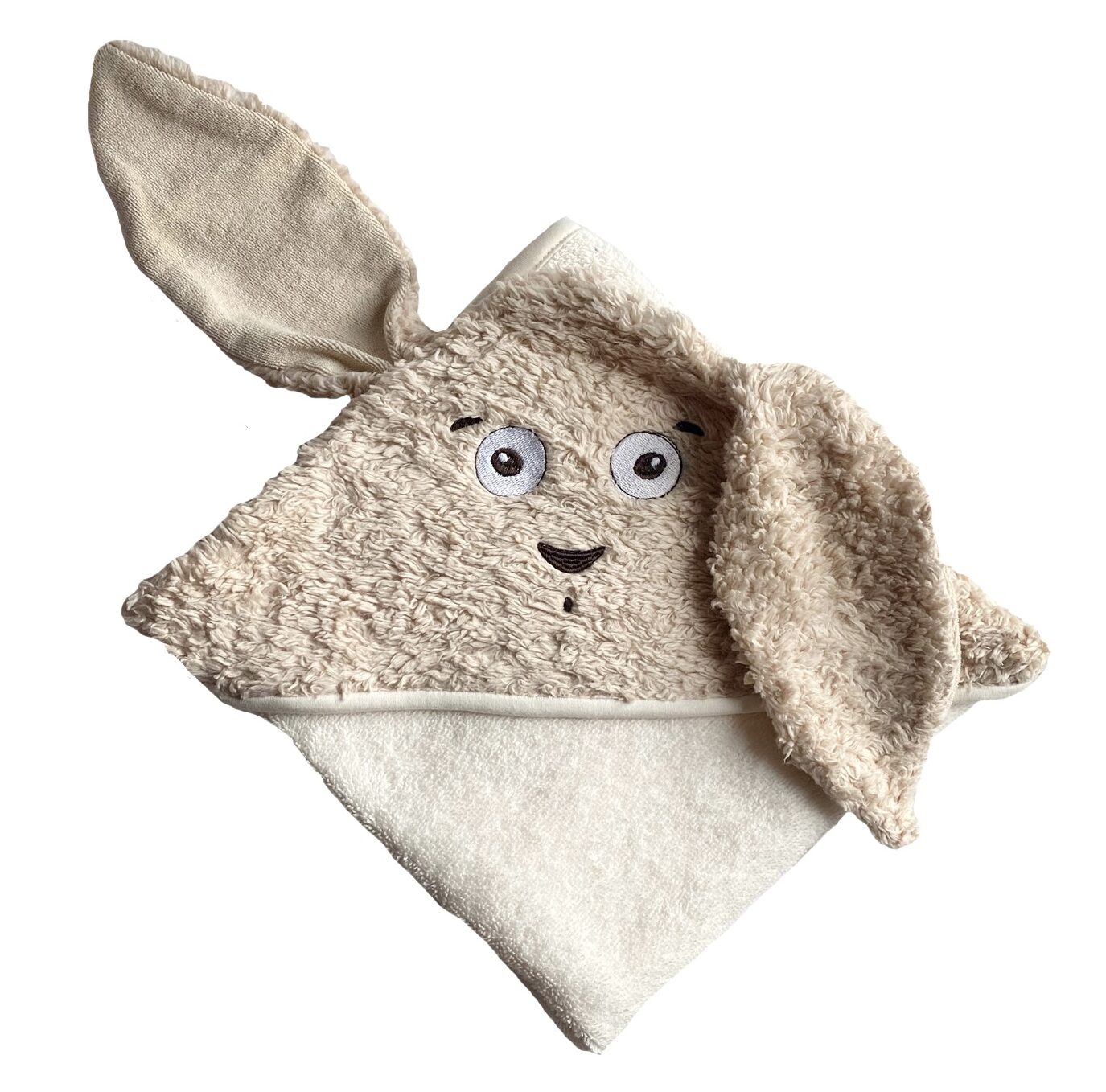 Cape de bain carrée grande taille 75cm x 75cm motif lapin aux grandes oreilles, avec option prénom à broder